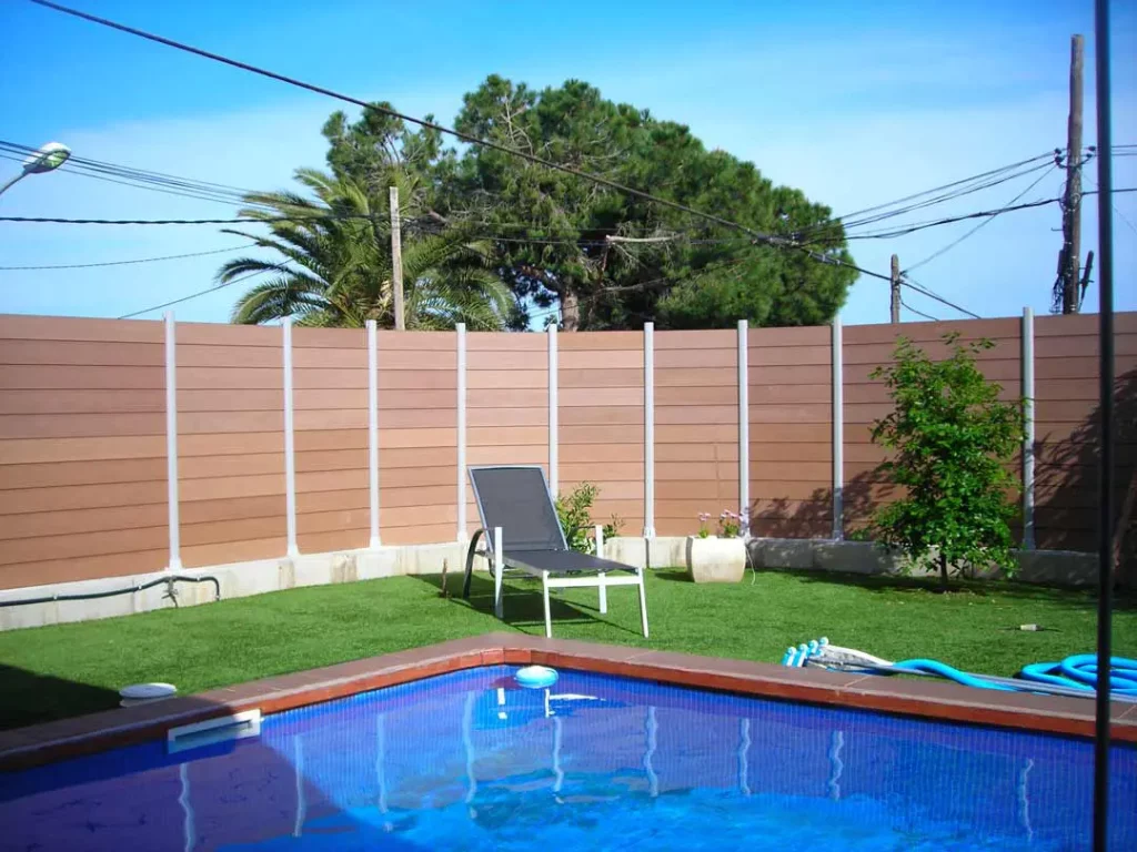 - Estética personalizable: Con las vallas de Madera Tecnológica®, puedes elegir diferentes acabados y colores que se adapten al diseño de tu espacio exterior, creando un entorno armonioso y elegante.